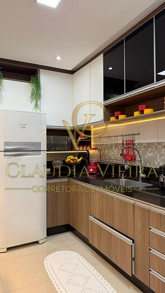 * Cozinha com móveis planejados, forno embutido, coifa e cooktop, tudo para uma experiência culinária completa.