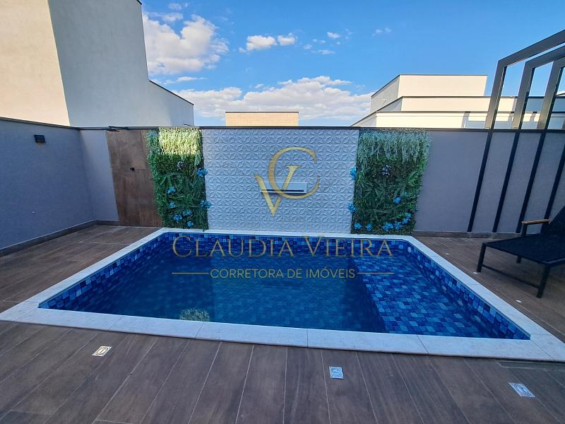 Casa equipada com ar-condicionado, espaço gourmet com churrasqueira e armários, além de uma linda piscina com cascata.