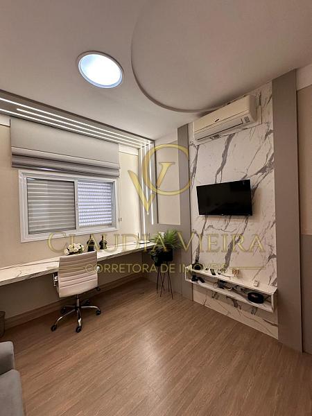 No piso superior estão 3 suítes, com destaque para a suíte master com closet e escritório privativo, todos os ambientes completos em marcenaria planejada.