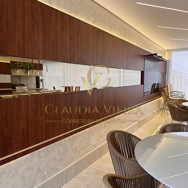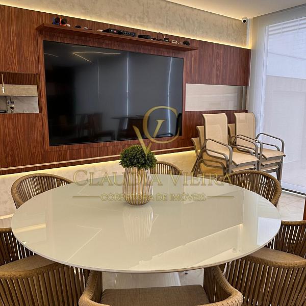 O espaço gourmet climatizado, com equipamento de 50.000 BTUs e telão de 100”, oferece um ambiente perfeito para lazer e recepção de convidados.